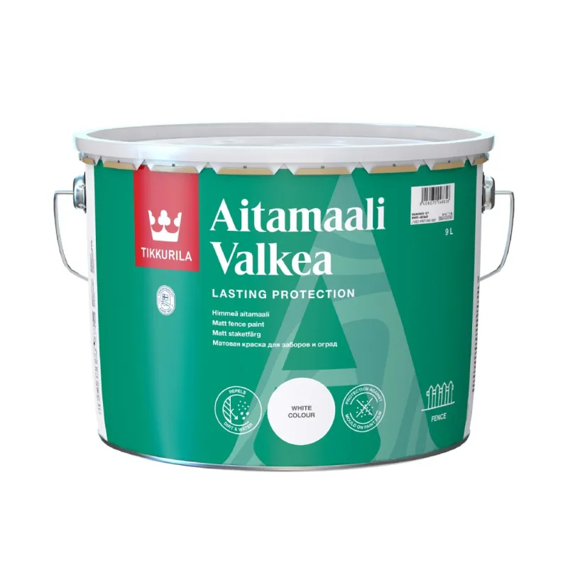 Weatherproof Aitamaali Valkea is a dirt-repellent fence paint that stays clean in impure weather conditions. Wooden fences and railings painted with Aitamaali Valkea can be easily washed clean if necessary.