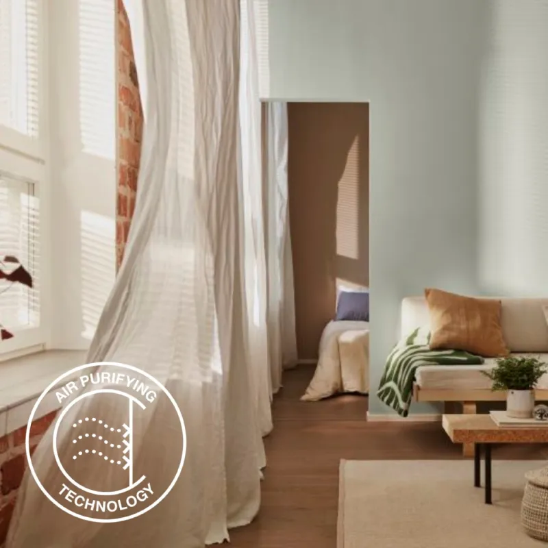 Harmony Clean Air is a full-matt wall paint with a new innovative technology that actively reduces the level of harmful formaldehyde in indoor air. This functionality has been proved by an accredited independent laboratory, Eurofins, using ISO 16000:23 test methods. A wall painted with Harmony Clean Air catches formaldehyde from air and binds it into the paint film without letting that out.