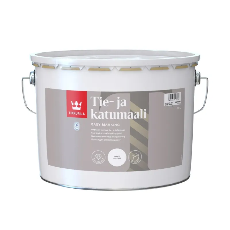 Easy-to-apply road marking paint is specially designed for marking traffic lines on asphalt, bitumen, etc. surfaces. Tie- ja Katumaali paint with a special acrylic resin is offering extremely fast-drying performance.