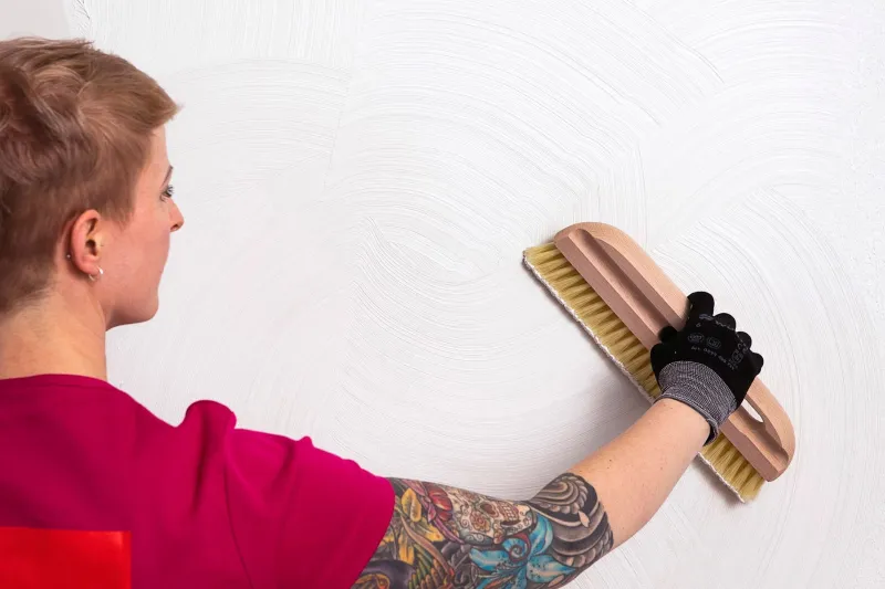 Make criss-cross patterns immediately on wet Tunto Fine using a brush. Clean the brush occasionally while working.