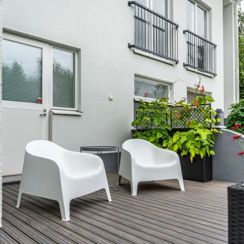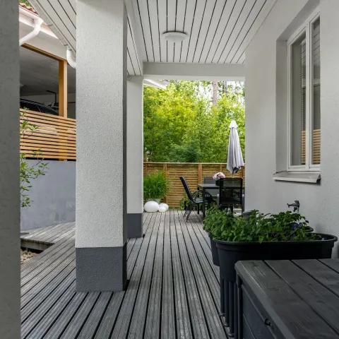 Terrace coating: Valtti Plus Terrace Oil, an oil treatment that protects wood against UV damage and makes treated surfaces highly durable. Ready-made colour: Ash Grey.