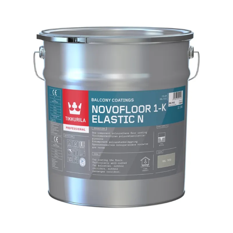Elastic and hardened by air humidity, UV-resistant, low-solvent single component polyurethane floor coating.