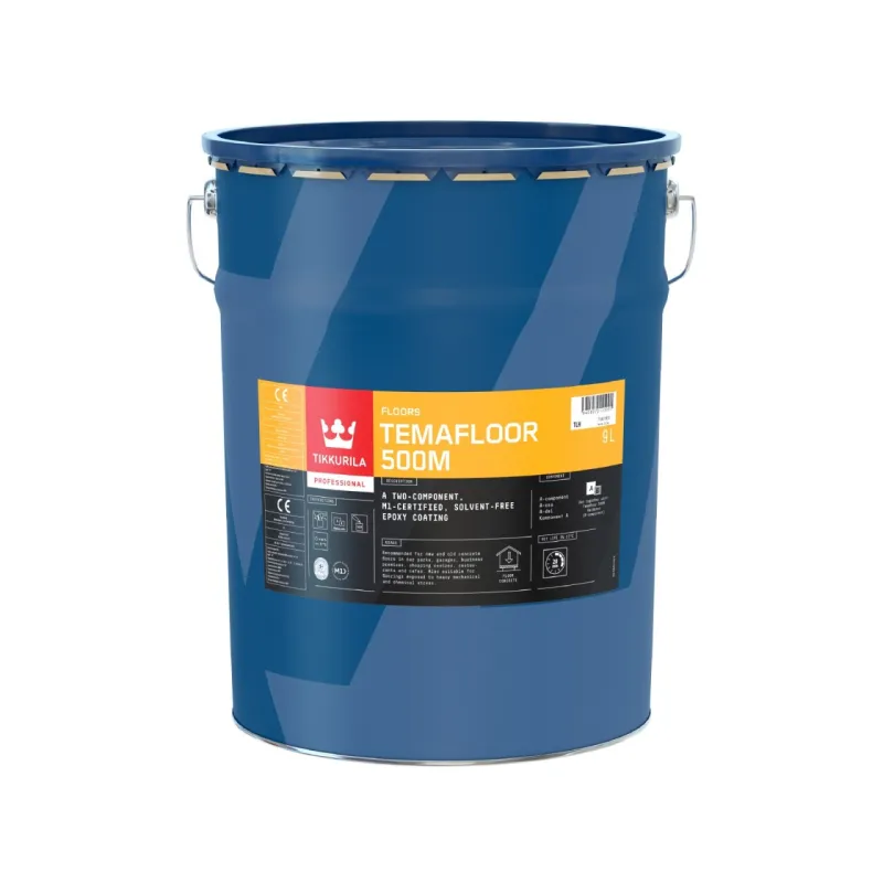 Temafloor 500M withstands heavy mechanical and chemical stress in industrial, commercial and storage facilities, repair shops, etc. It gives the concrete flooring a smooth, non-porous surface, making cleaning quicker and easier.